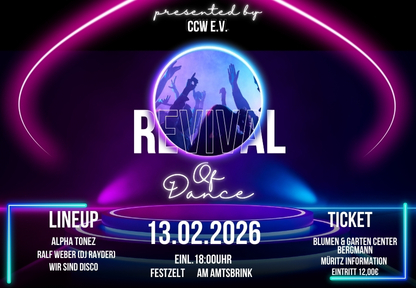 - 13.02.2026 – Revival of Dance: Partyabend mit den besten Hits und Tanzstimmung im beheizten Festzelt AB 18:00 Uhr