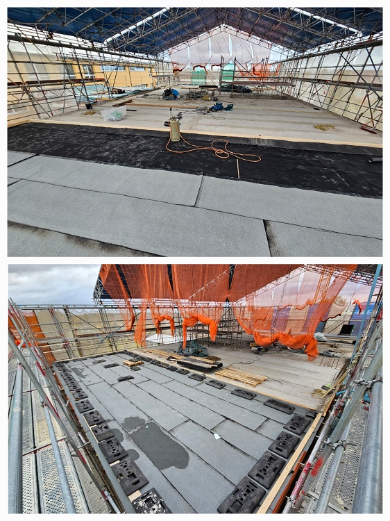 - Auflegen neuer Deckenplatten über dem 2.OG im Bereich der abgebrochenen Sheddächer