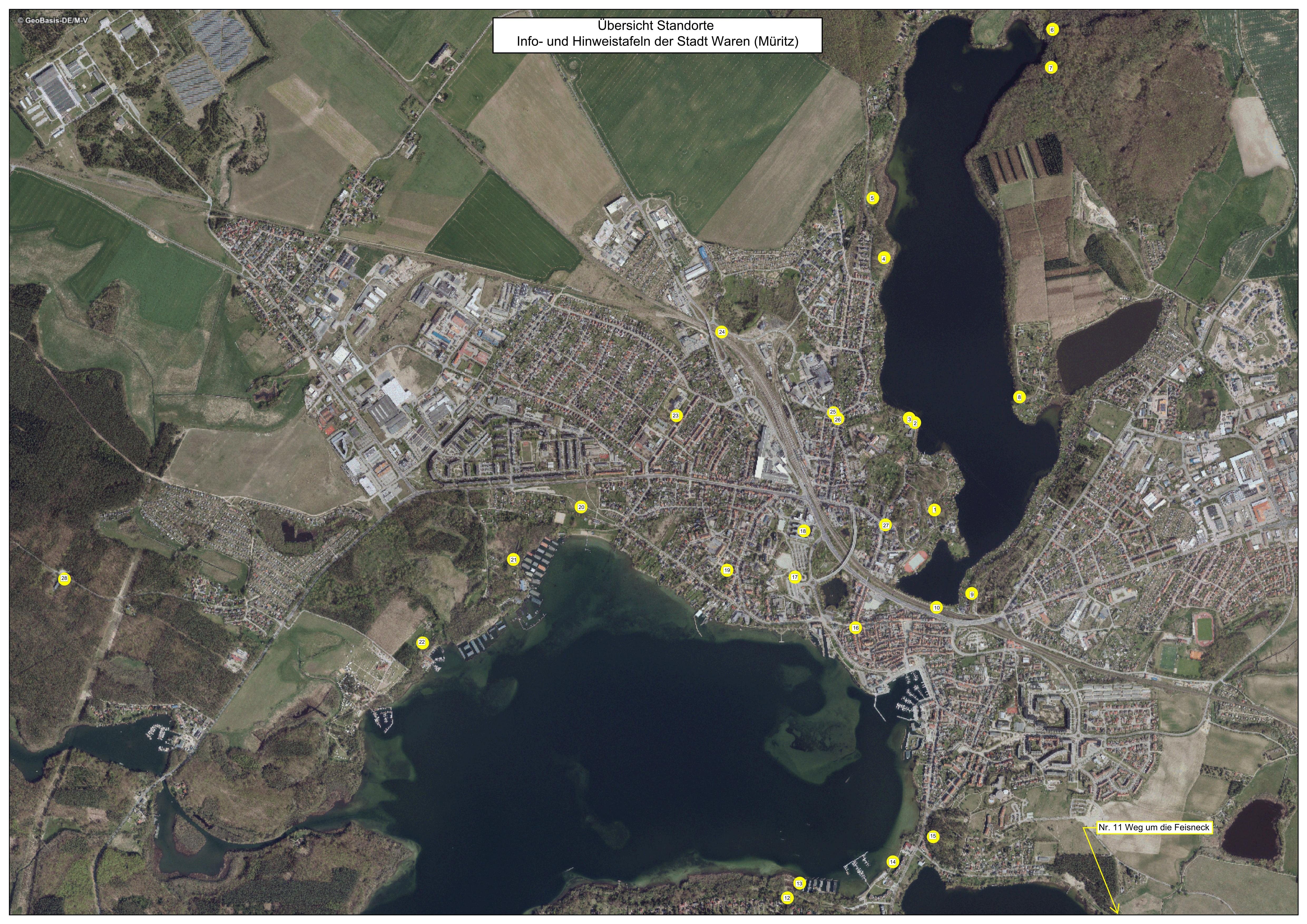 Auf dieser Seite finden Sie eine Übersicht aller Infotafeln zum Eiszeitlehrpfad um den Tiefwarensee, historische Infotafeln im Stadtgebiet, sowie Hinweistafeln zur Flora & Fauna der Stadt Waren (Müritz). Auch einige englische Übersetzungen stehen Ihnen hier zur Verfügung.