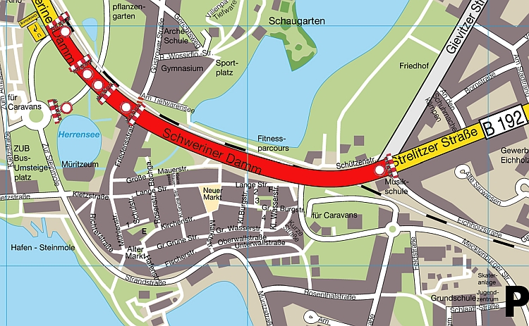 In der Zeit vom 20. bis einschließlich 23. April 2026 kommt es jeweils in den Nachtstunden in der Zeit von 22:00 bis 5:00 Uhr zu einer vollständigen Sperrung des Schweriner Damms im Bereich der Herrenseebrücke. Grund für die Maßnahme sind notwendige Untersuchungen am Brückenbauwerk der Herrenseebrücke. Der betroffene Abschnitt ist für den motorisierten Verkehr sowie für den Rad- und Fußgängerverkehr gesperrt. Für die Dauer der Sperrzeit wird eine Umleitung eingerichtet. Diese führt über den Papenberg über die „Strandstraße“ in Richtung „Am Seeufer“. Die entsprechende Beschilderung wird vor Ort ausgewiesen.